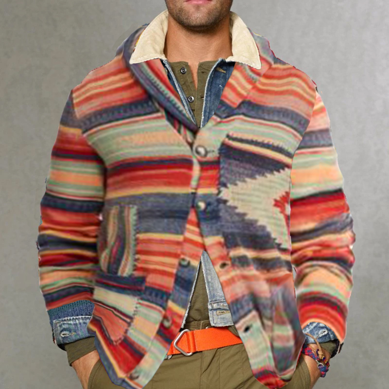 Vintage Casual Rainbow Striped Lapel Sweater Cardigan