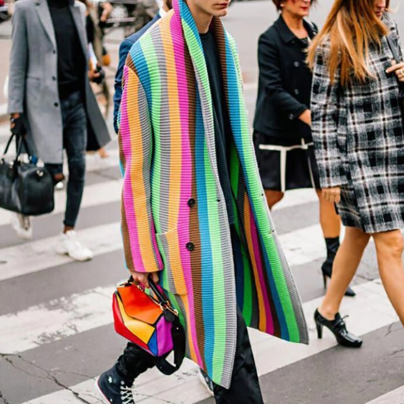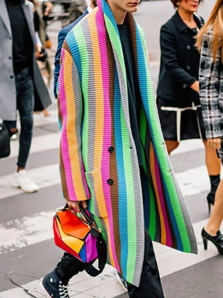 Fashion Individuality Multicolor Mid-Length Sweater Coat