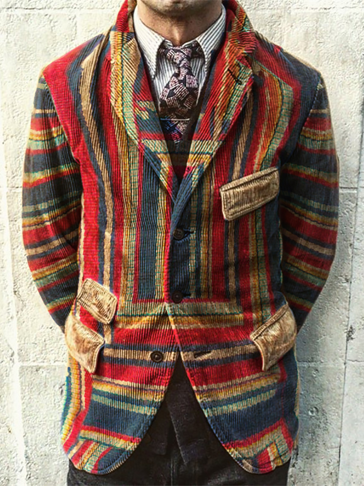 Fashion Casual Rainbow Printed Corduroy Jacket