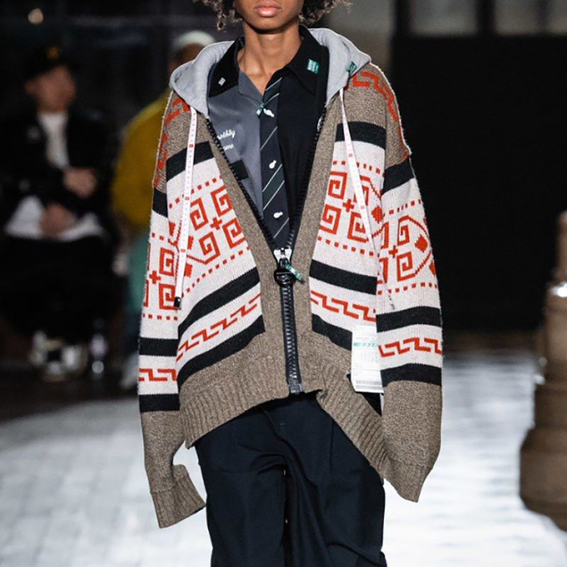 Fashion Contrast Color Pattern Hooded Sweater Coat
