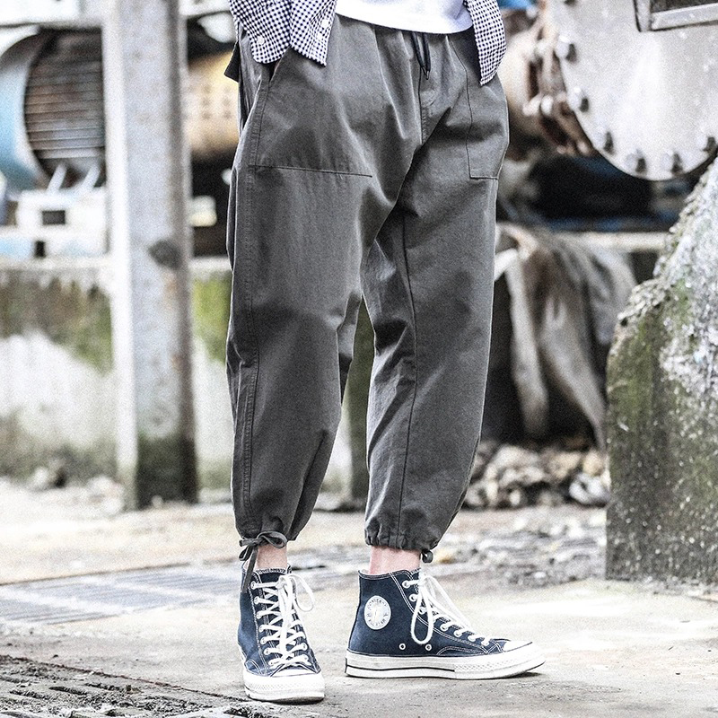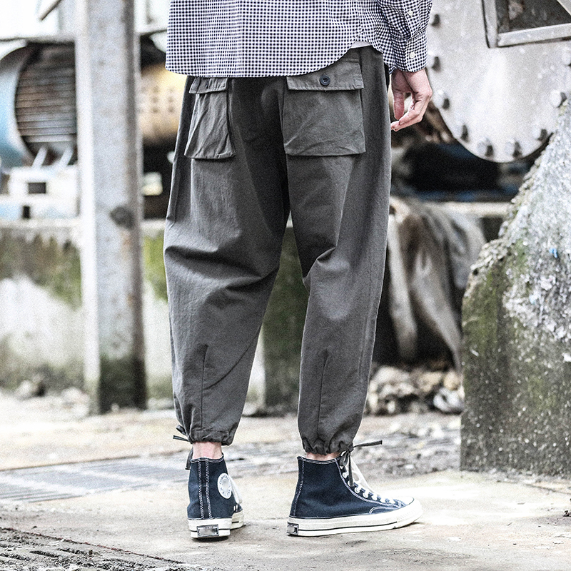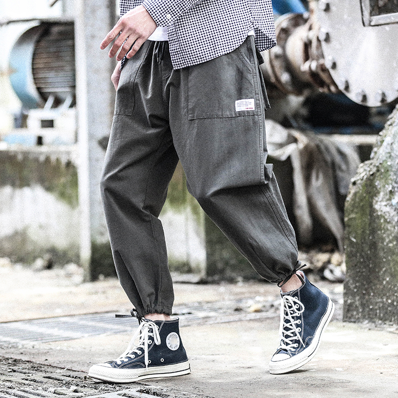 Fashion Pure Colour Elastic Waist Tooling Pants